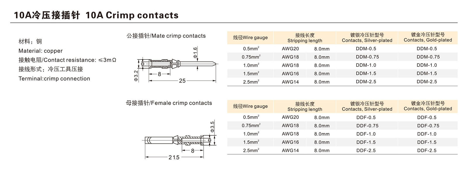 10A冷压接插针