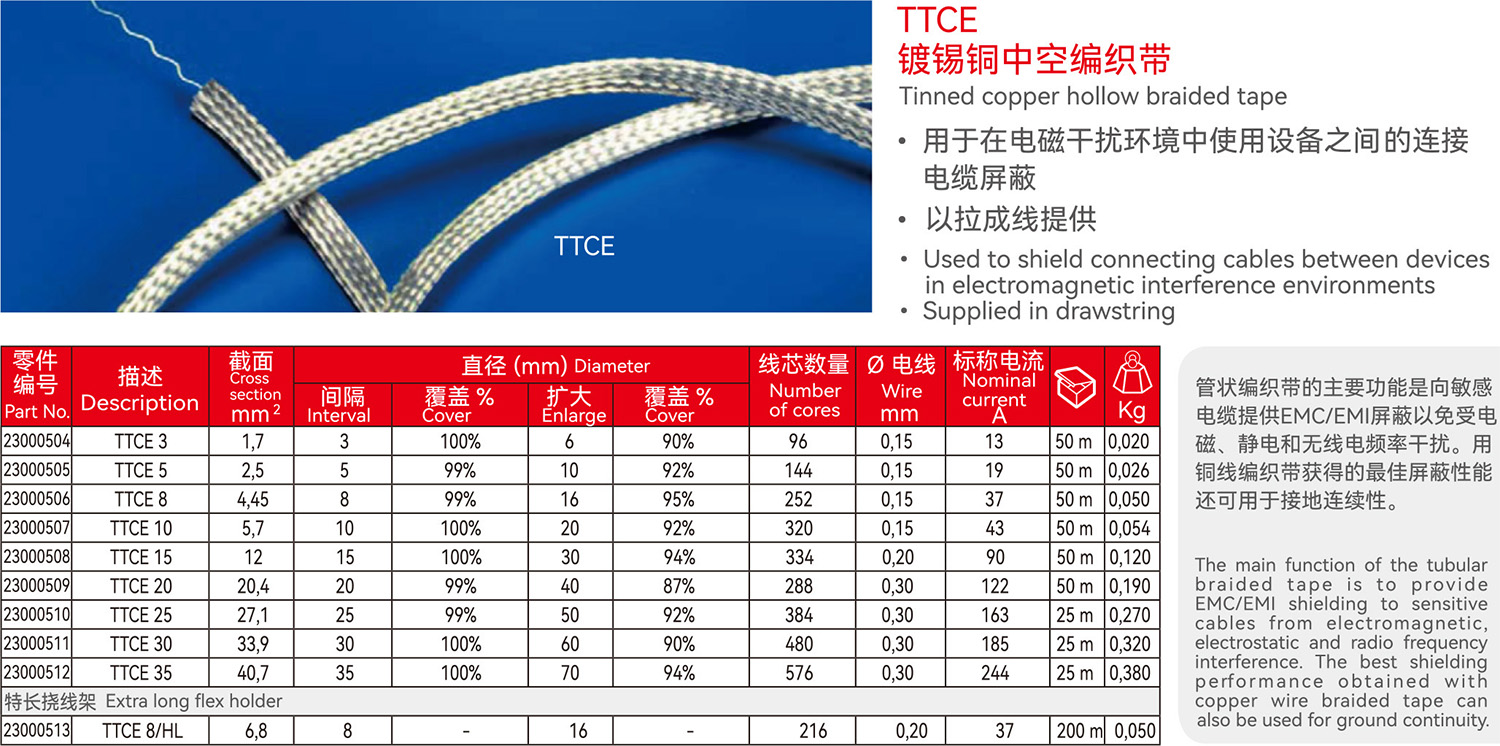 TTCE镀锡铜中空编织带